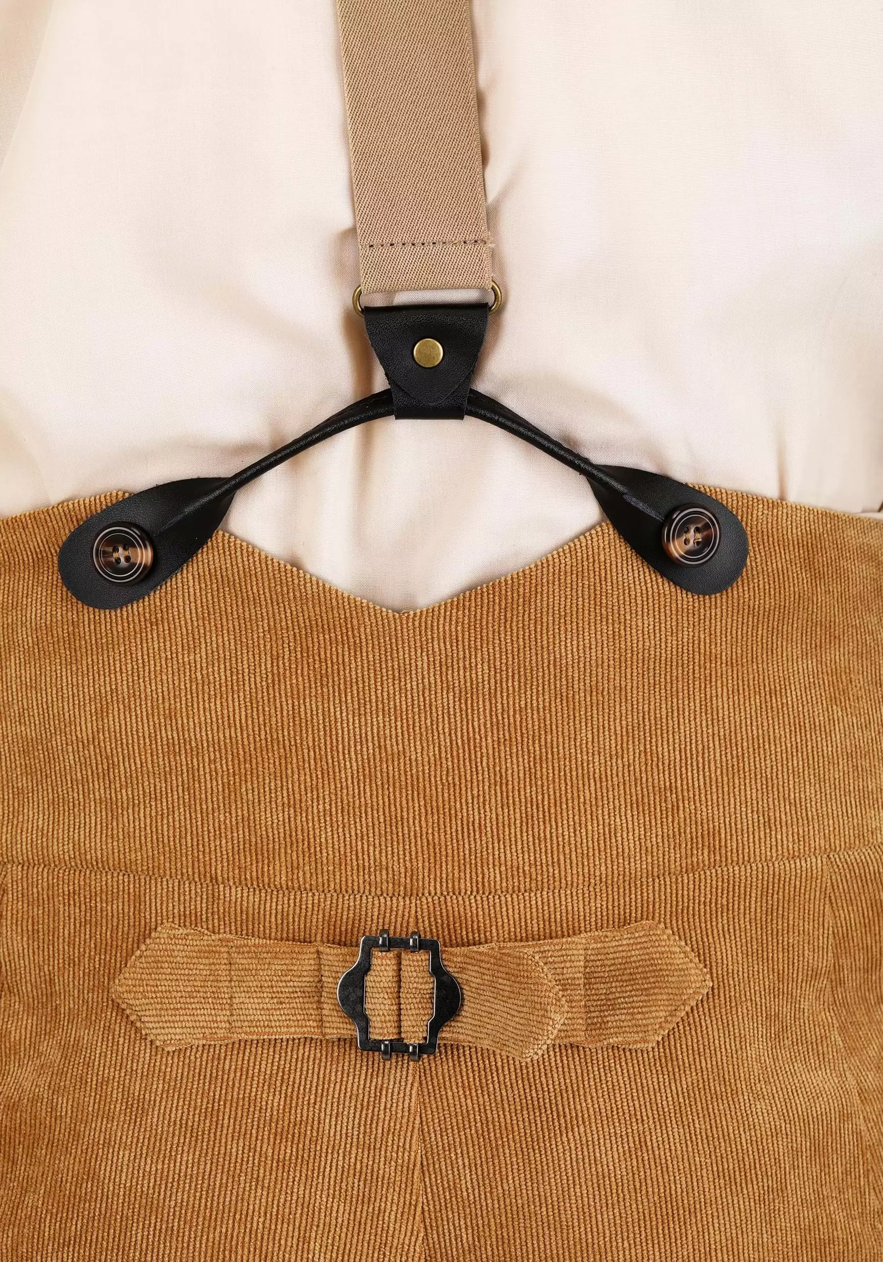 Deck yourself out in this epic Adult Ship Stowaway costume! This inspired outfit is a Made By Us design that will have you feeling like you’re sailing out and dancing down with the best of them. The ensemble includes a lightweight, vintage-style shirt that buttons up the front and a pair of corduroy slacks with working pockets. A pair of twin buttons at the side serve as fasteners for the faux leather suspenders, too.