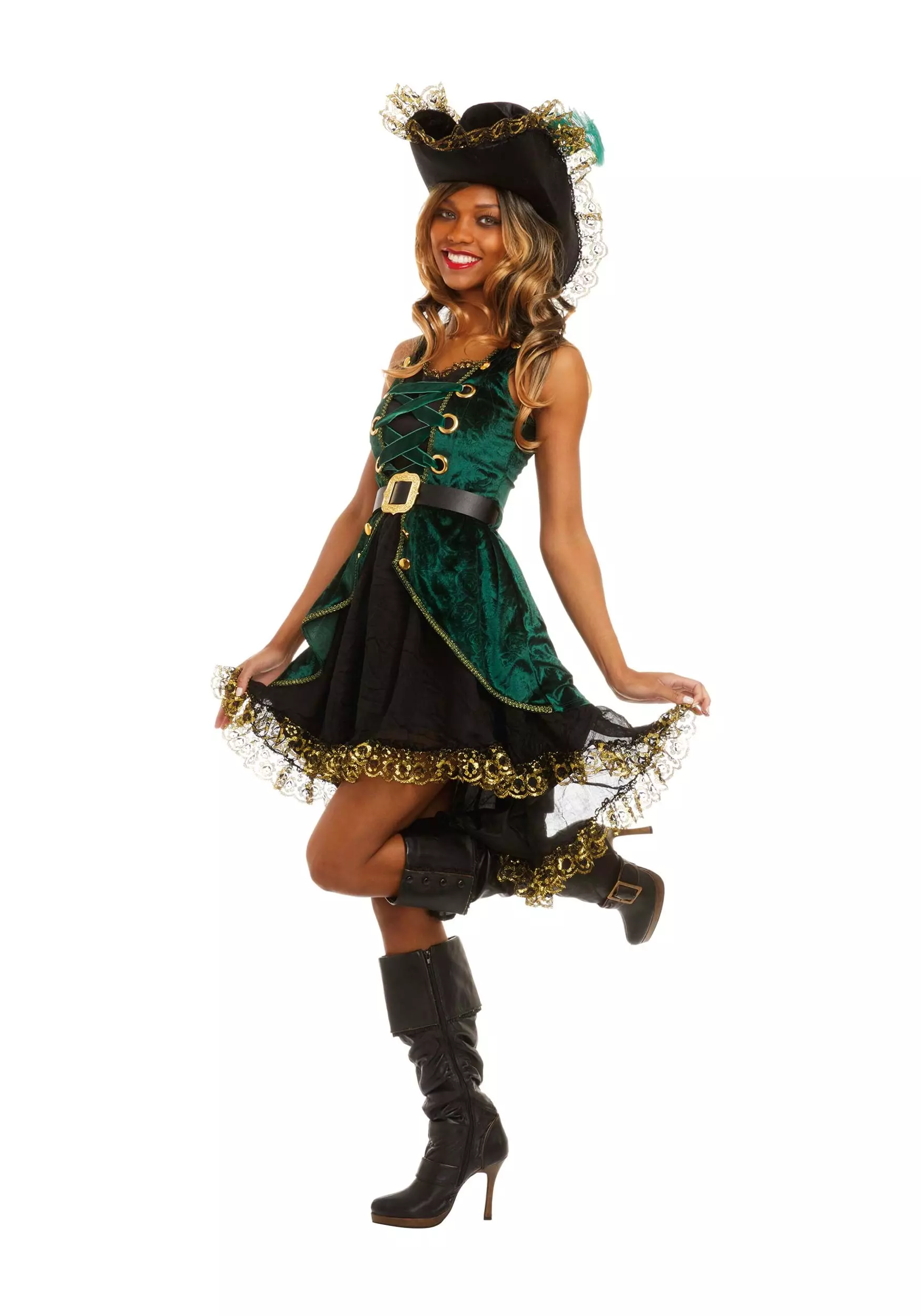 If you want to sail the high seas in search of plunder, there is no better way to do it than with this Women’s Emerald Pirate Costume. You will love stealing hearts and gold bars alike in this awesome costume!