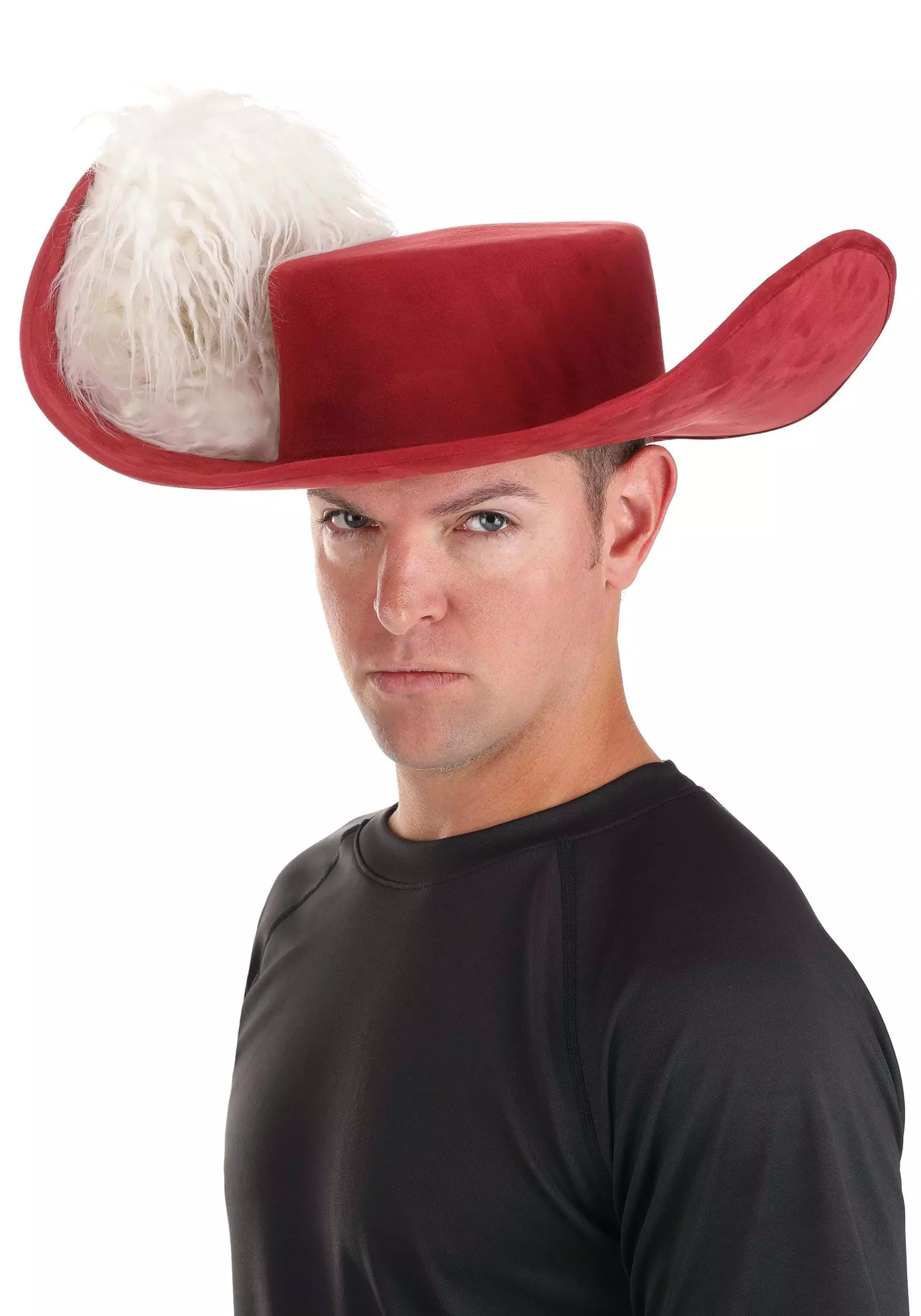 Become the most famous pirate in the world with this Hat for Captain Hook! Besides his hook, the captain is really well known for his great sense of style, especially his lid. This red hat has a stylishly curved brim and is decorated with an oversized white faux fur “feather.” It’s great for flourishing dramatically right before you fire a pistol at an underperforming crew member.