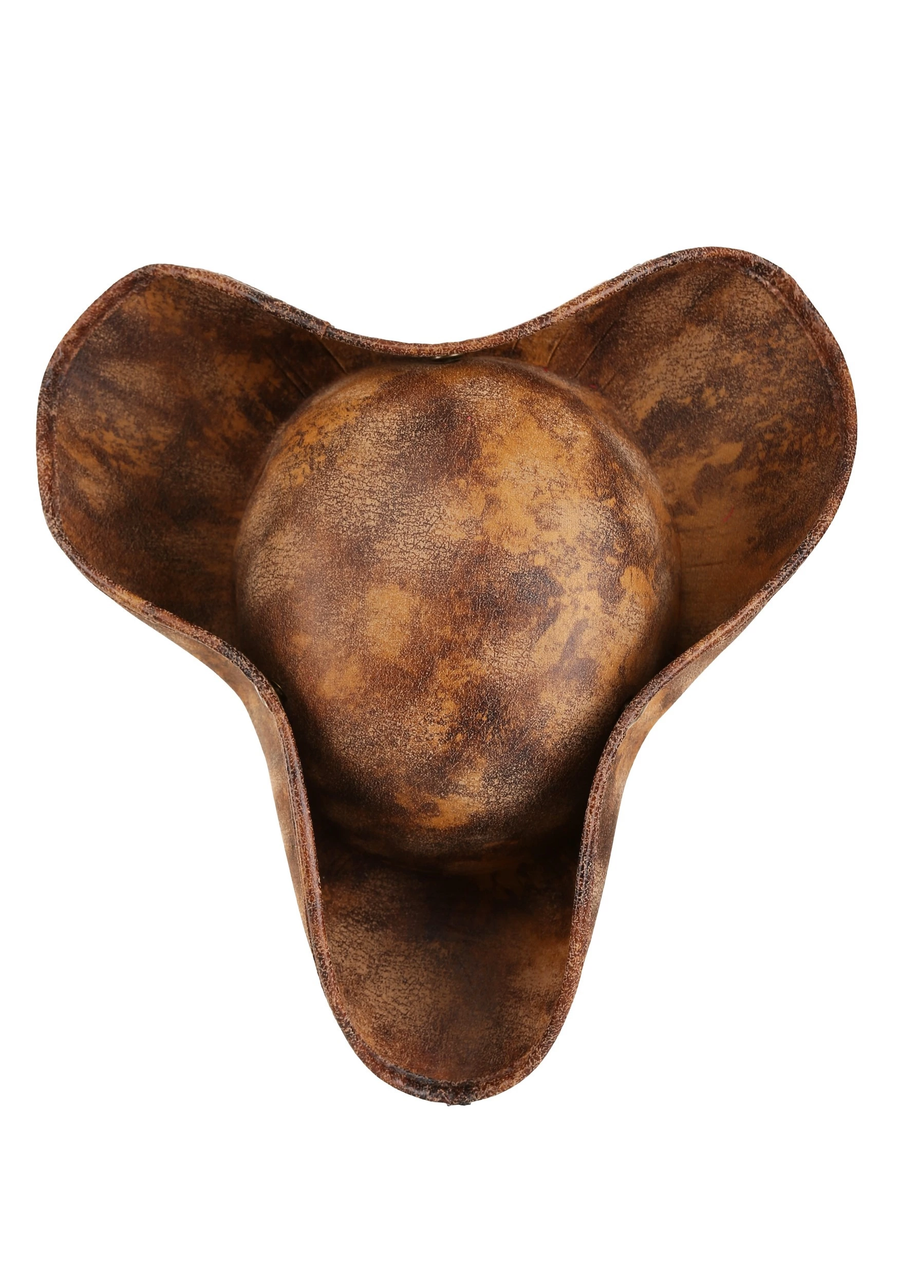 - Hat has metal snaps around crown to hold brim edges up in tricorn shape
