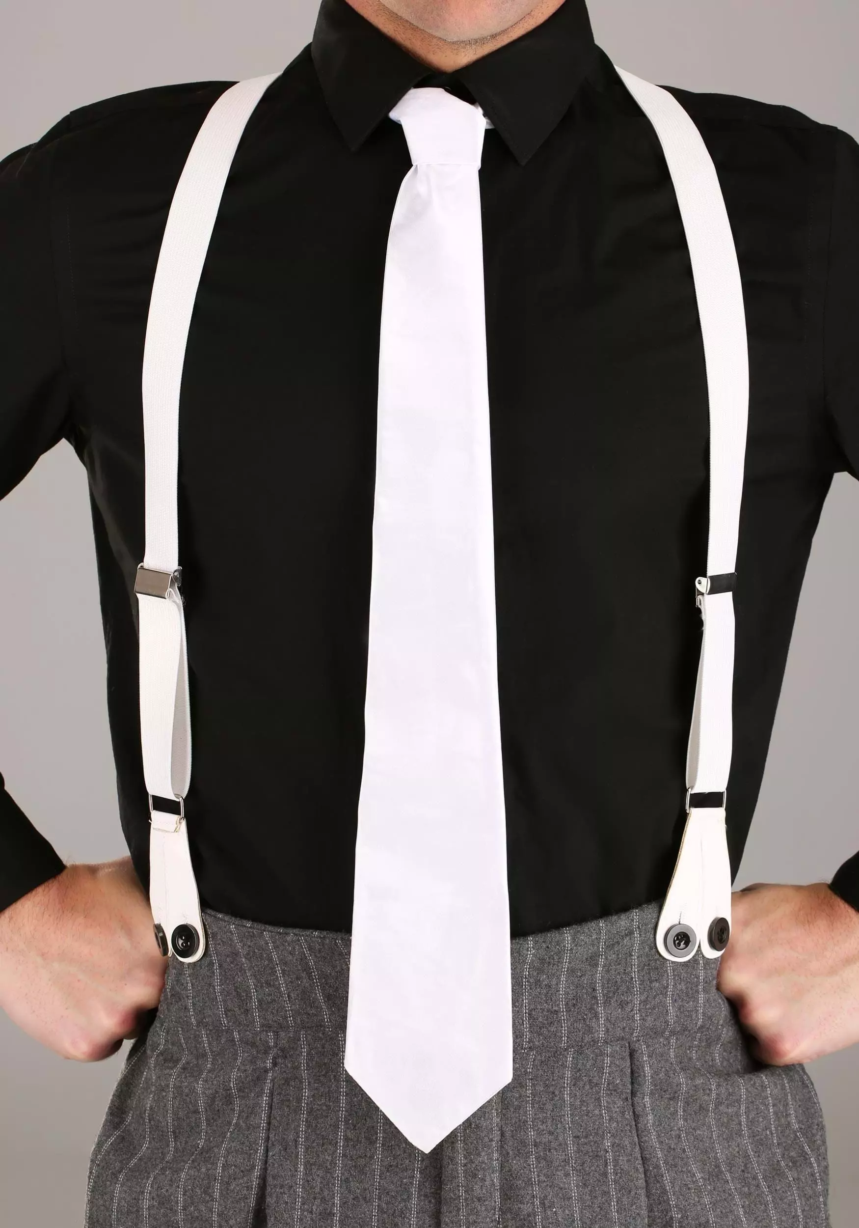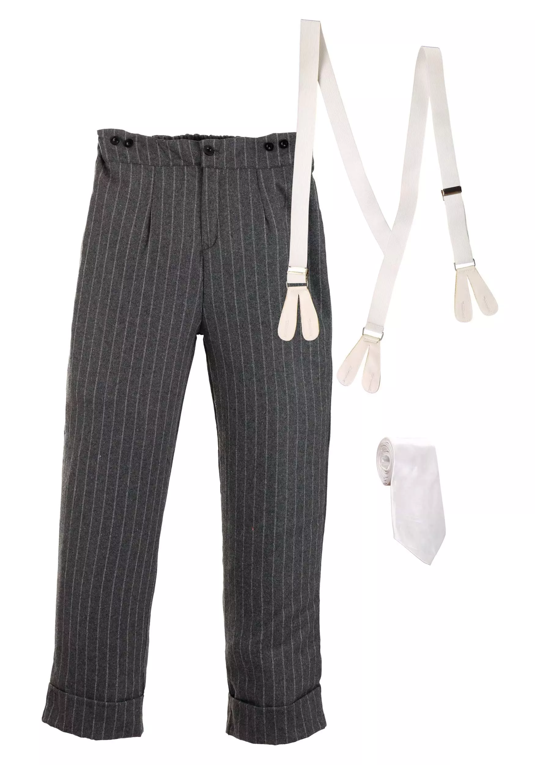 This 1920’s style gangster costume comes with everything you’d expect to make an impression. The costume includes a pair of pin-stripe pants that look like they came straight from a time machine. A set of classic white suspenders are also included to give you that official mobster style. Pair that with the white tie and you got a look so slick, you might not even need your tommy gun when you decide to cause trouble. All you have to do is add one of your own dress shirts to your look and it’s time to get down to business!