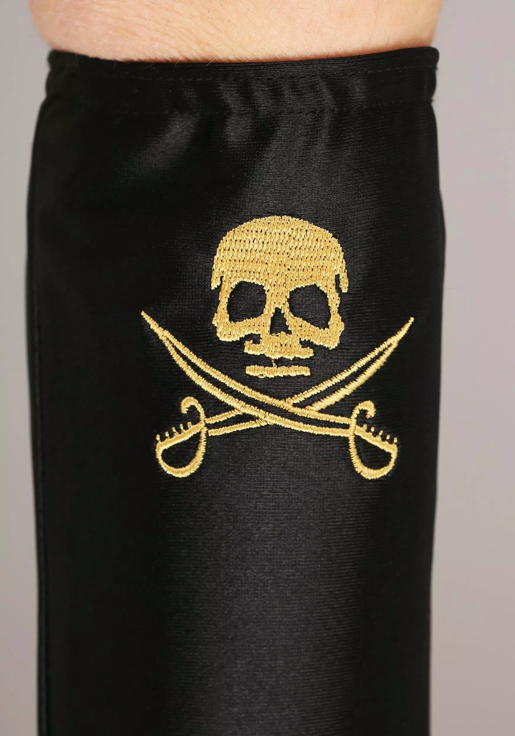 Our expert costume designers wanted to craft an outfit that helps you feel as free as freebooter sailing the high seas! It’s an exclusive design that combines a cute, modern style with the classic pirate look to create a truly unique pirating experience. The women’s pirate costume starts with a bodysuit. The bottom is black, while the top portion is designed to look like a pirate blouse. It has lace on the thighs to help adjust the fit, while giving it a daring look that’s perfect for a new life of piracy. The belt and hip scarf fit around the waist. The gloves are elbow-length and they feature a Jolly Roger symbol on the sides. Finally, the headscarf ties around your head to complete the whole ensemble. It’s a look that’s fierce and free!