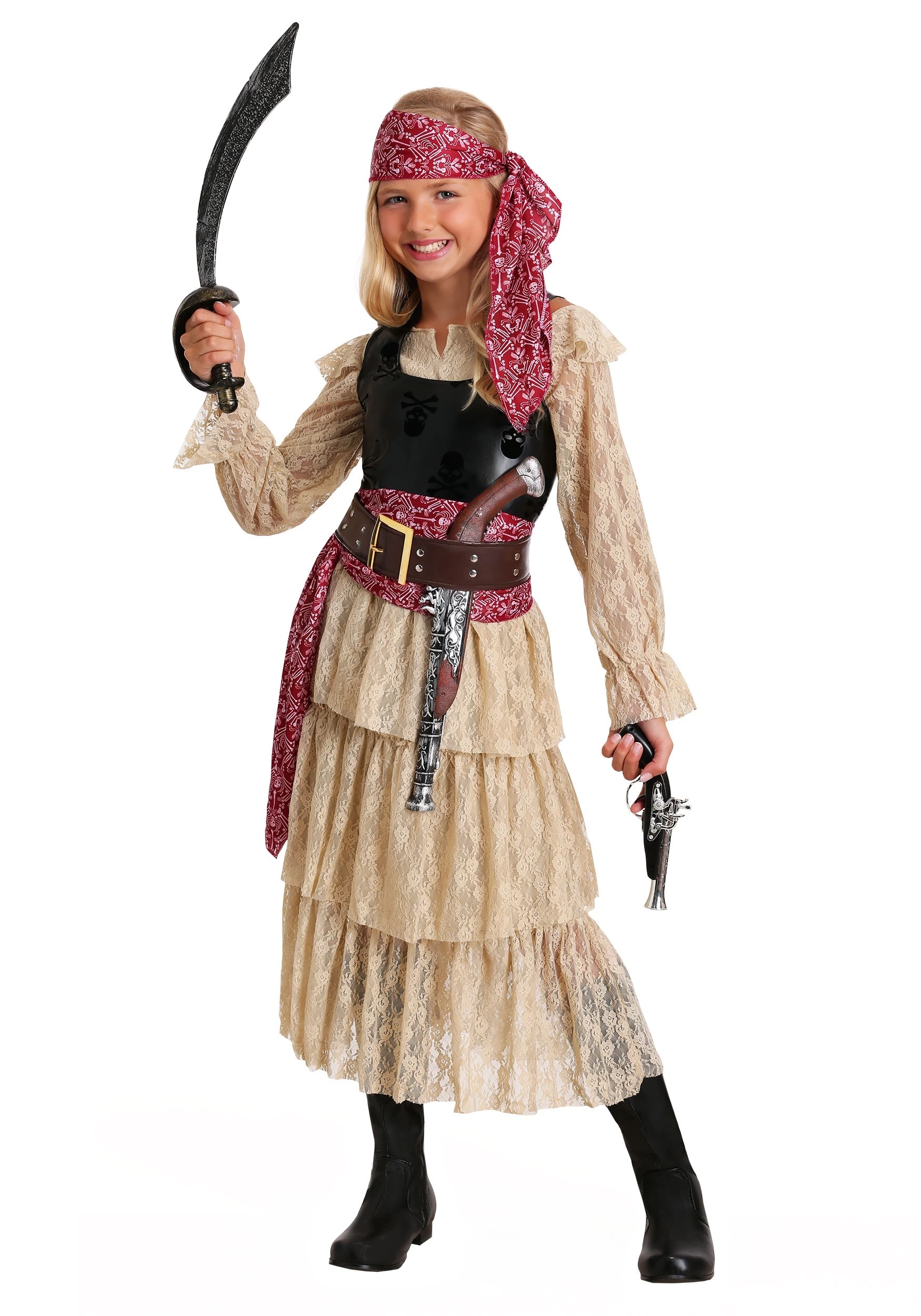 If you’re still on the fence about committing her to the pirate’s life, lets just give her a dry run with this girl’s Sweet Swashbuckler costume. This elegant costume set will give her a taste of a pirate’s life with zero commitment to a life of swashbuckling!