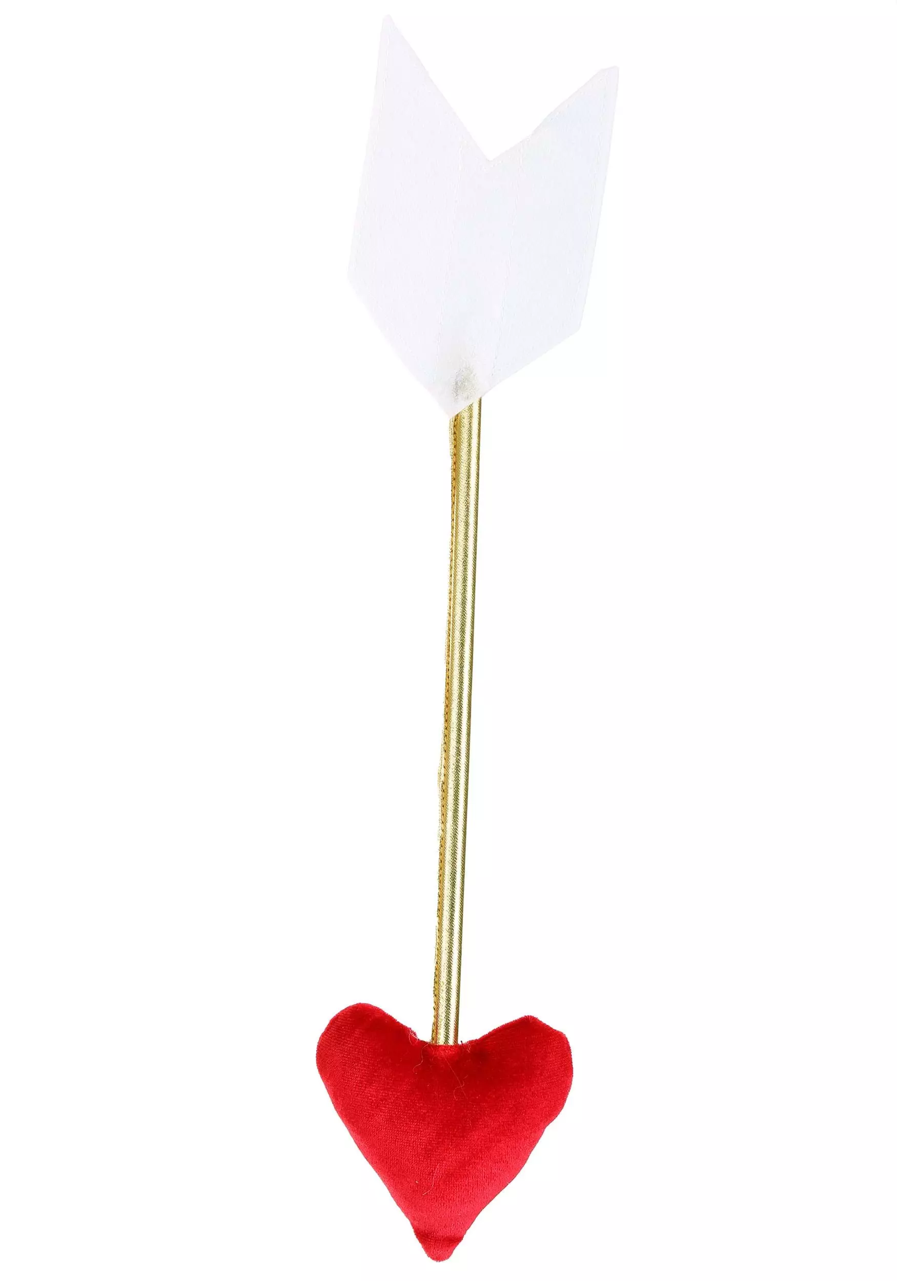 - Arrow is fabric-covered plastic rod w/ stuffed velvet heart as arrowhead