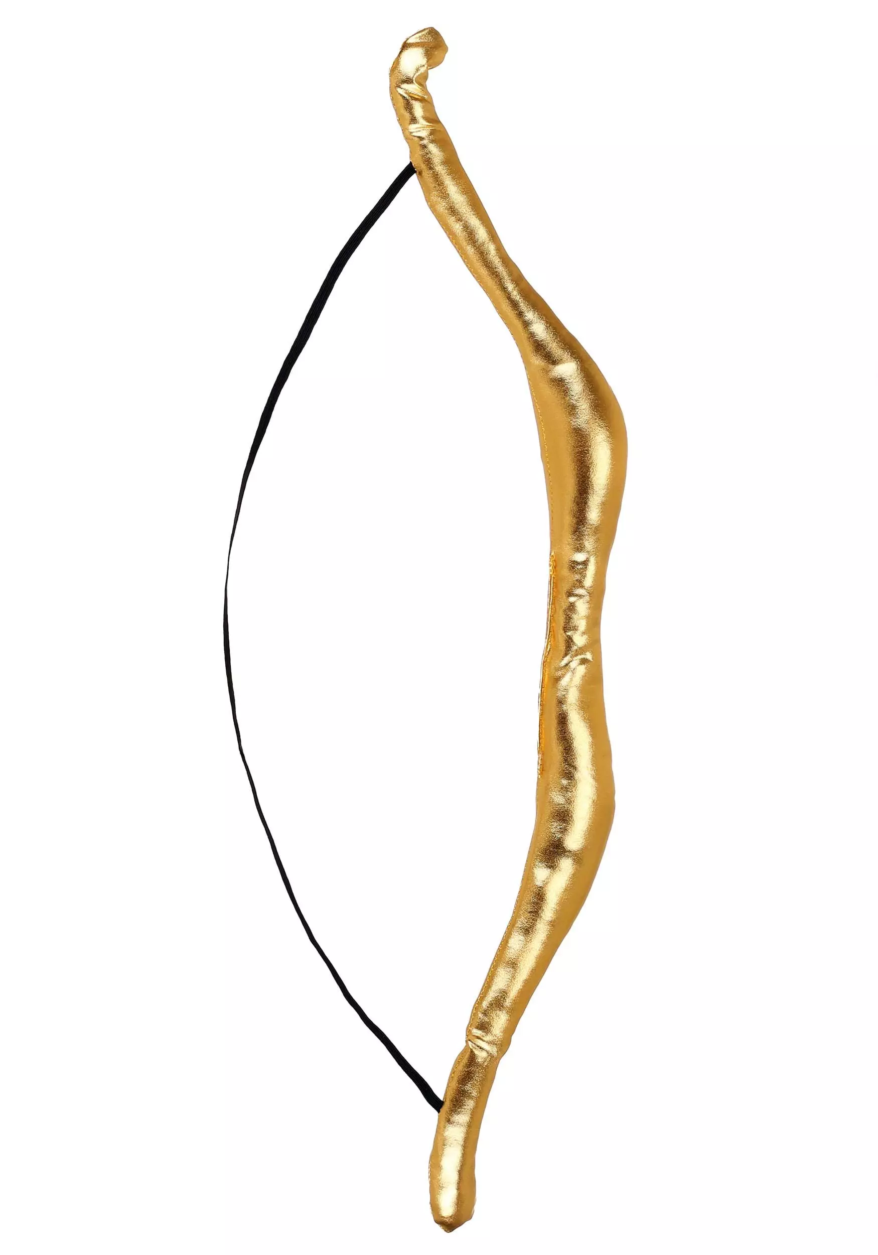 - Bow is stuffed metallic knit with flexible plastic core & elastic bowstring