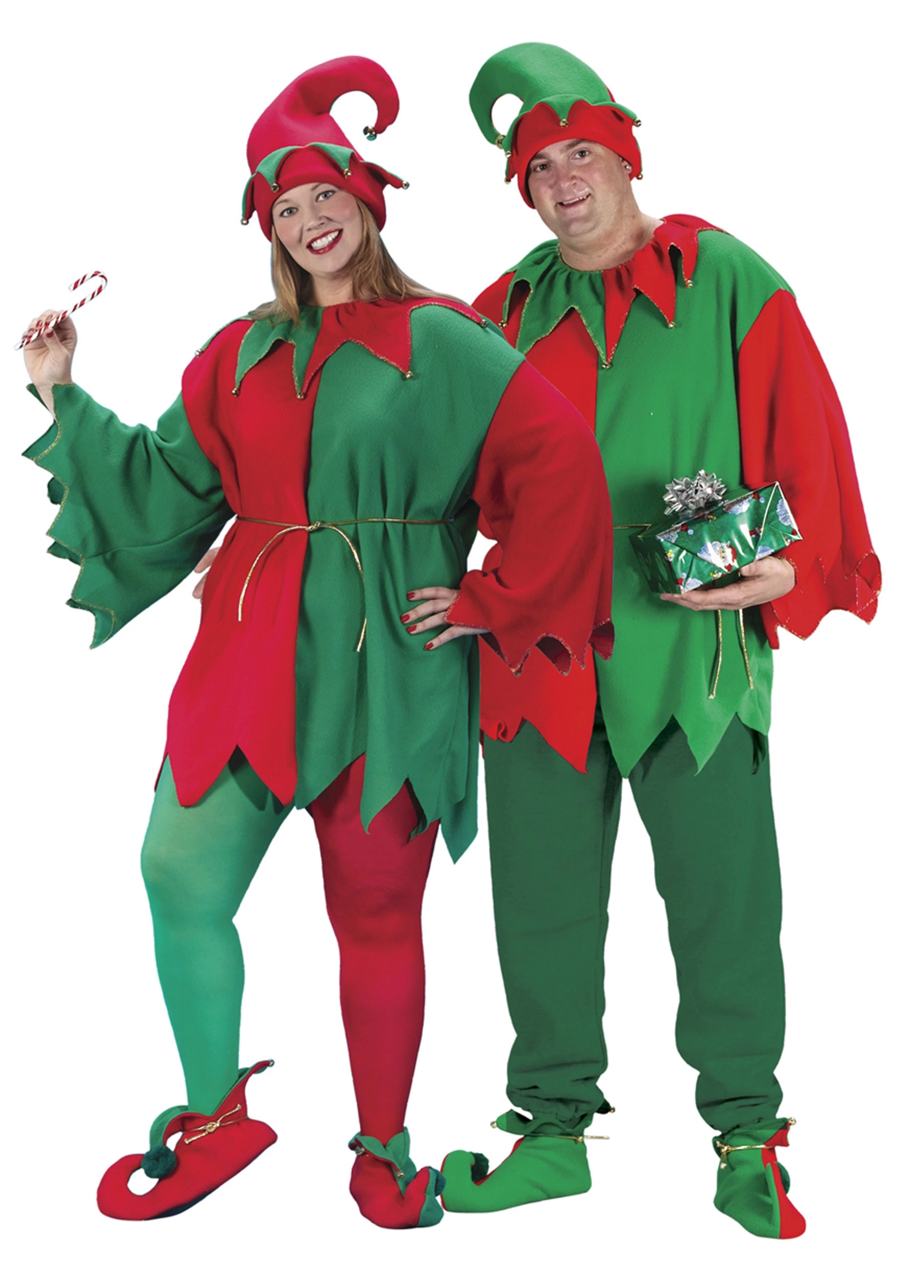 Be your own sort of merry this year by stepping into this Santa Elf costume. The red and green tunic has a jagged hemline and sleeves that make for a truly fun look no matter the season. But, if that wasn’t enough, you get to heighten the fun further with jingling bells and an accented gold belt and pom poms on the tips of your red or green shoes! You’ll barely need to accessorize, but a bonus cap or package of candy canes will only make the look all the more real (and then you’ll even have candy canes, so… bonus)!