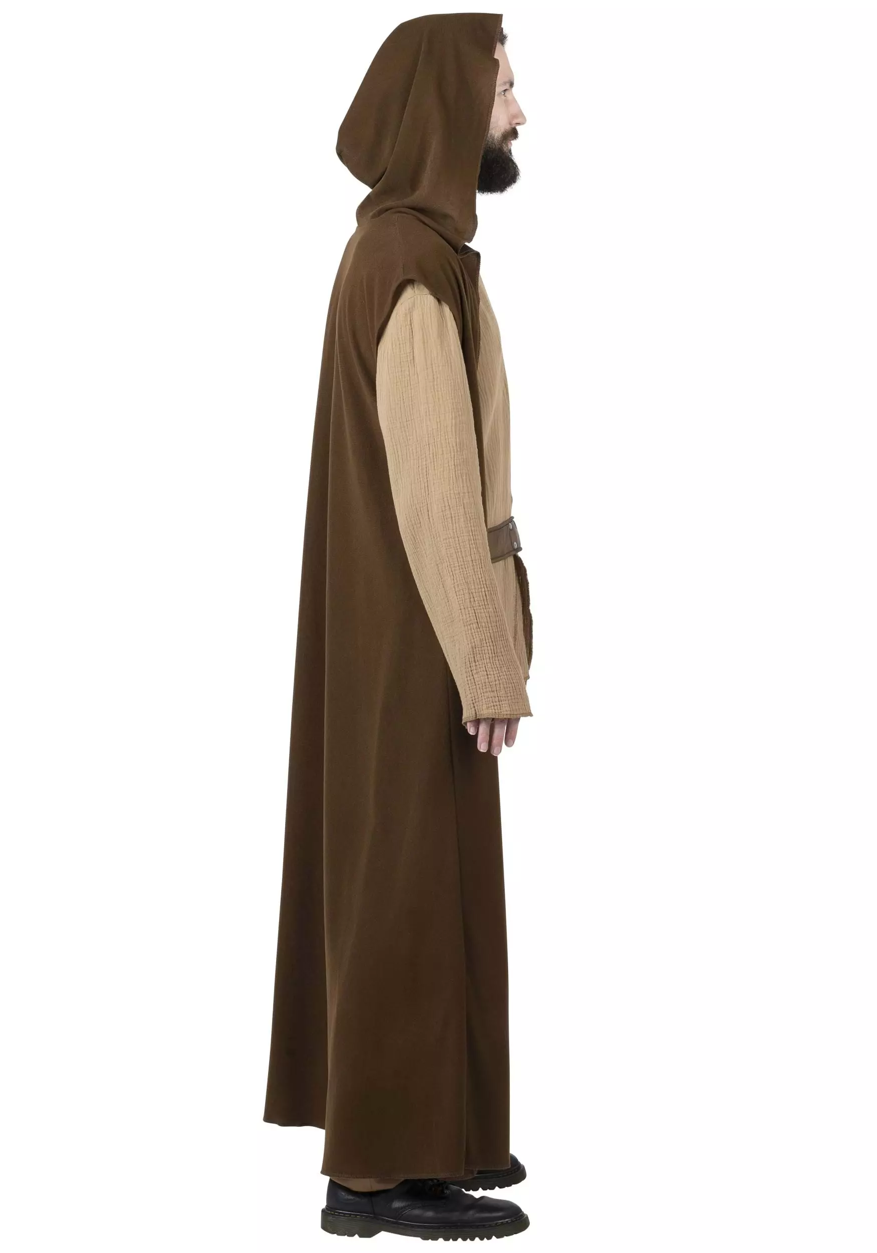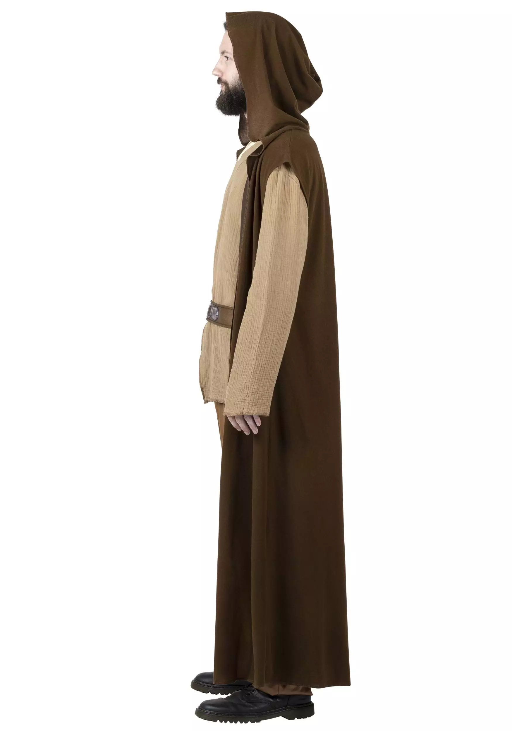 Use the Force and choose this officially licensed Obi-Wan Costume for Adults for your next costume event! The light brown pullover shirt has a v-neckline and elastic in the back of the waistband. A brown foam belt fastens around your waist. The jersey knit pants have an elastic waistband, which is comfortable enough to outrun the Stormtroopers in, if necessary. The long, sleeveless robe has an attached oversized hood to hide your features from the Sand People.