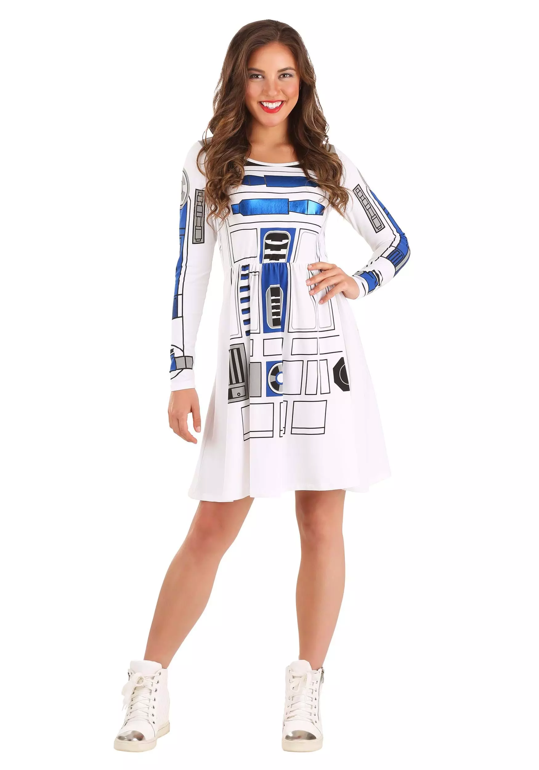 And who knows what the future might hold? In twenty years, we might be beeping and whistling about our outfits in Binary instead of typing in English on an old-fashioned keyboard! That’s what’s great about science fiction: the possibilities are limitless—and more often than not, they involve charismatic little robots. But you don’t have to wait for the future or travel to a galaxy far, far away. You can get this great dress right here, right now!