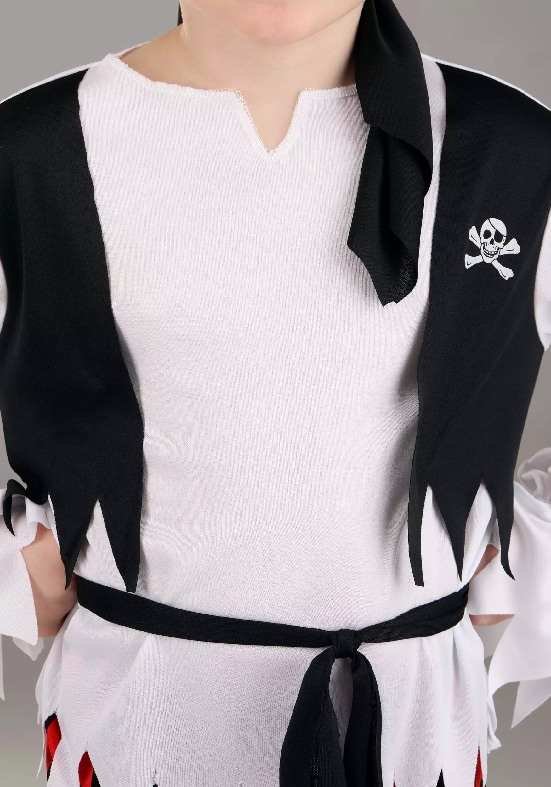 - Printed skull and crossbones on left vest panel