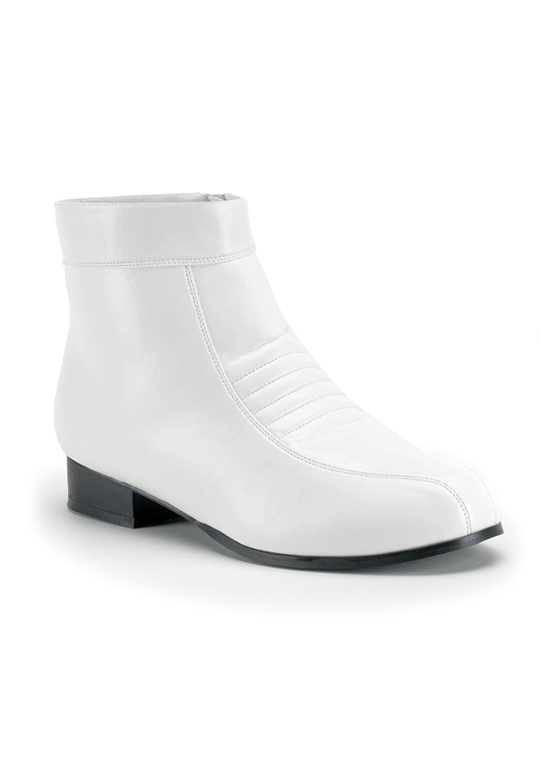 Whether you want to add the finishing touch to your Stormtrooper costume or dress up your retro disco look, these white men’s boots are a great choice. They slip on easily, secure with a sturdy zipper and add polish to any costume. Made from a shiny vinyl, they are sure to catch the attention of everyone you meet this Halloween and they are even comfortable enough to wear for other occasions such as theme parties and plays. Don’t leave your costume unfinished – add these white shoes to the ensemble to complete the look this Halloween!