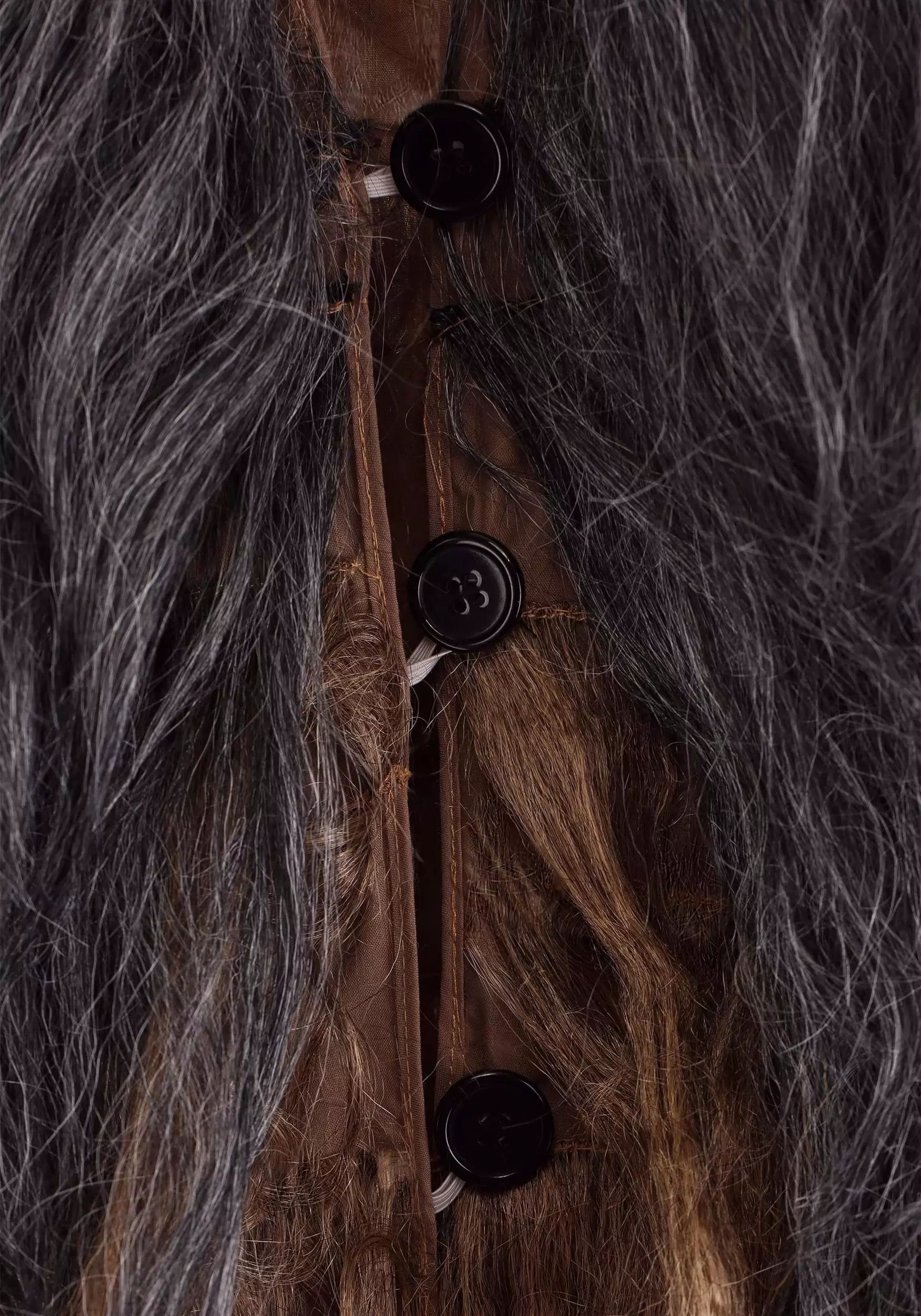 - Brown, gray and light tan hairs are hand-layered to create Wookiee-style fur