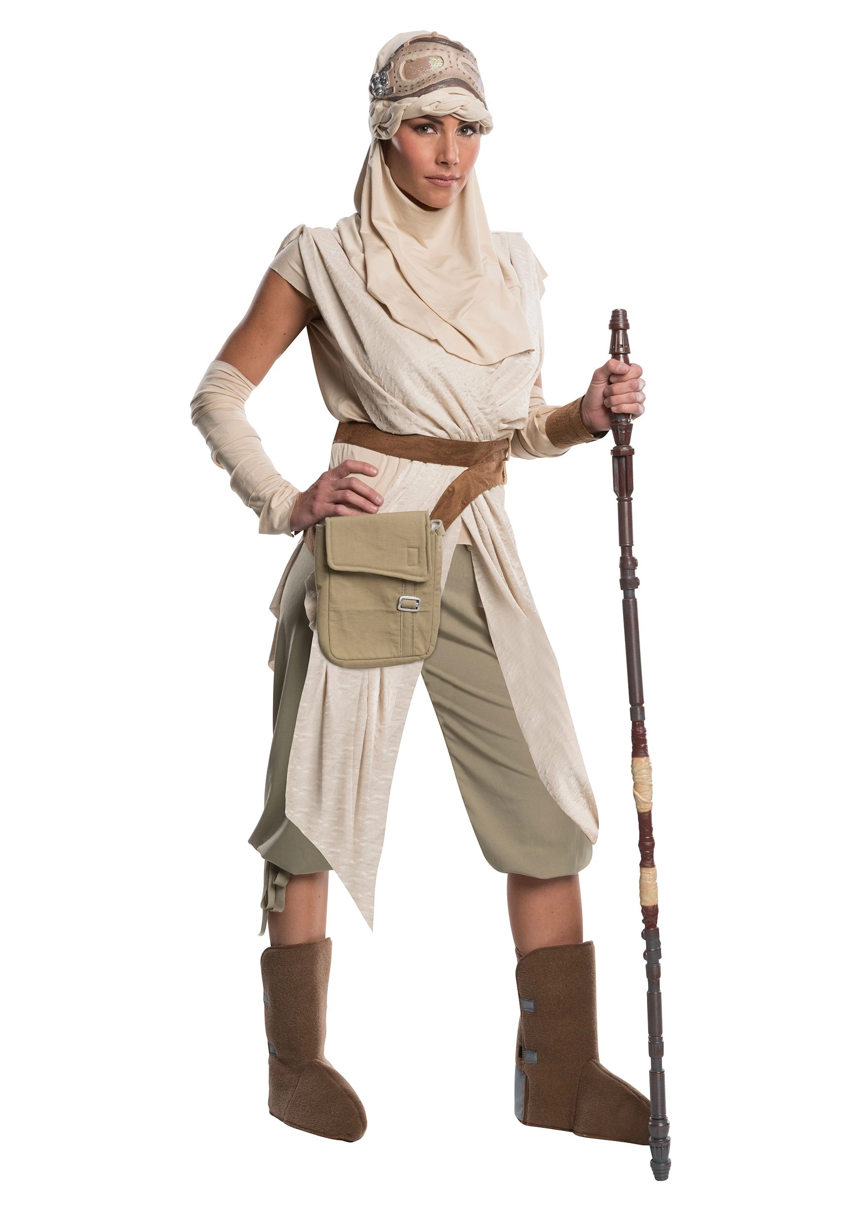 Imagine being stranded on the desert planet, Jakku, waiting for your family to return for you. Every day, you have to dig through old Star Destroyers for junk, just so you can trade them in for some weird green bread to survive. Oh, and your boss is a creepy alien, who’s also kind of a jerk, and he’s working against you to capture your new friend BB-8. So, it’s safe to say, you often need to use your awesome bo-staff skills to thwack bad guys. Also, you probably have Force powers and a really awesome theme song composed by John Williams in this whole imaginative scenario and… you got us. This is totally the plot to Star Wars: The Force Awakens! Now, our important question to you is this: What kind of outfit are you wearing during all this? We think you should be wearing this Grand Heritage Rey Costume.