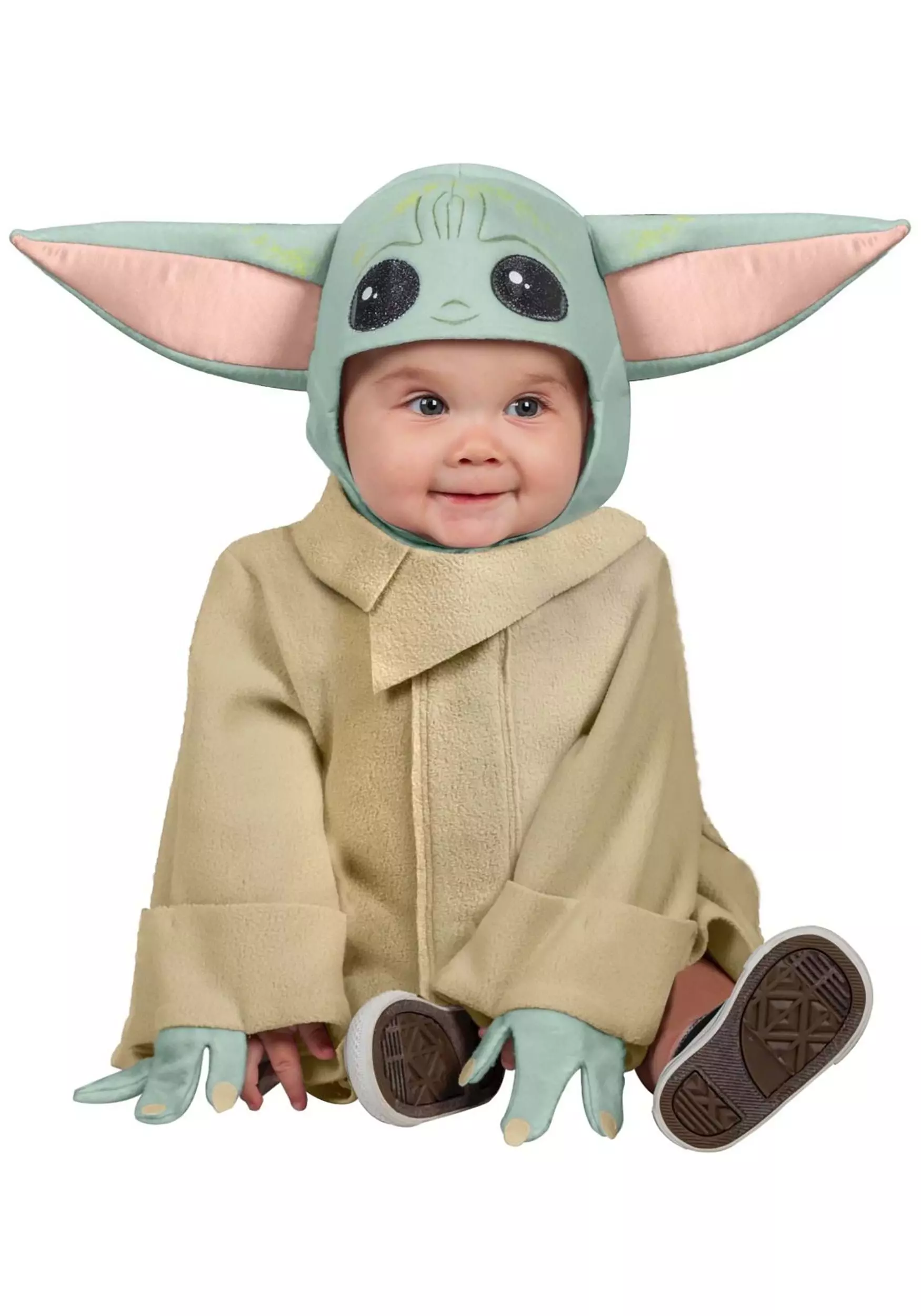This kid’s costume is officially licensed from The Mandalorian and comes with everything your child needs to become the little Force-using character. It starts with a cream-colored robe, just like his outfit from the series. It even comes with attached green hands on the sleeves! The hood is a matching green color and is designed to look like Yoda’s face. It has a large pair of floppy ears attached to the sides and it has Baby Yoda’s big, adorable eyes on top. Once your child has it all on, they’ll be ready to join you on an intergalactic adventure!